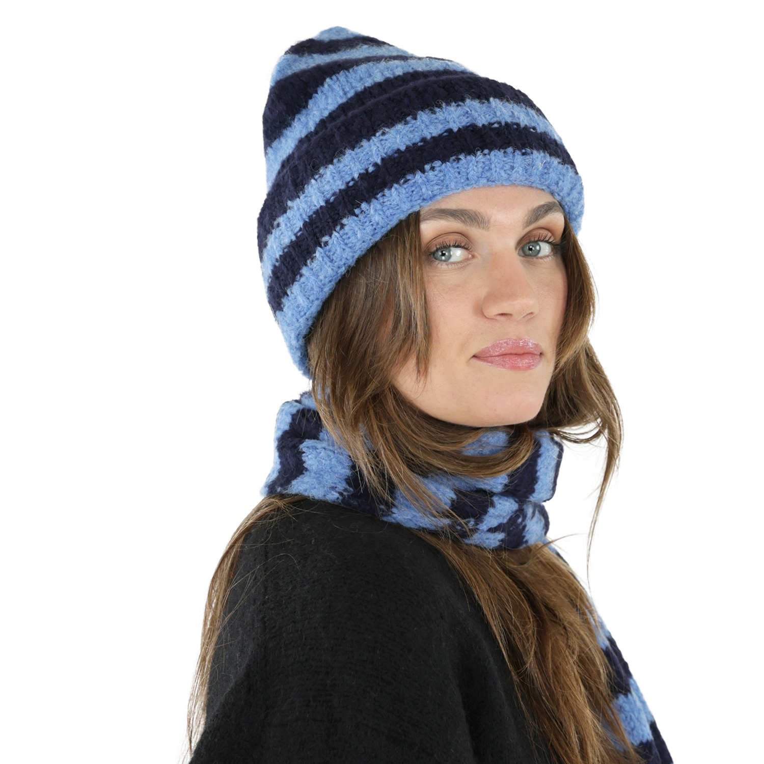 Halsdukar - Gårda Grindelwald Striped Wool Mix Scarf (blå)