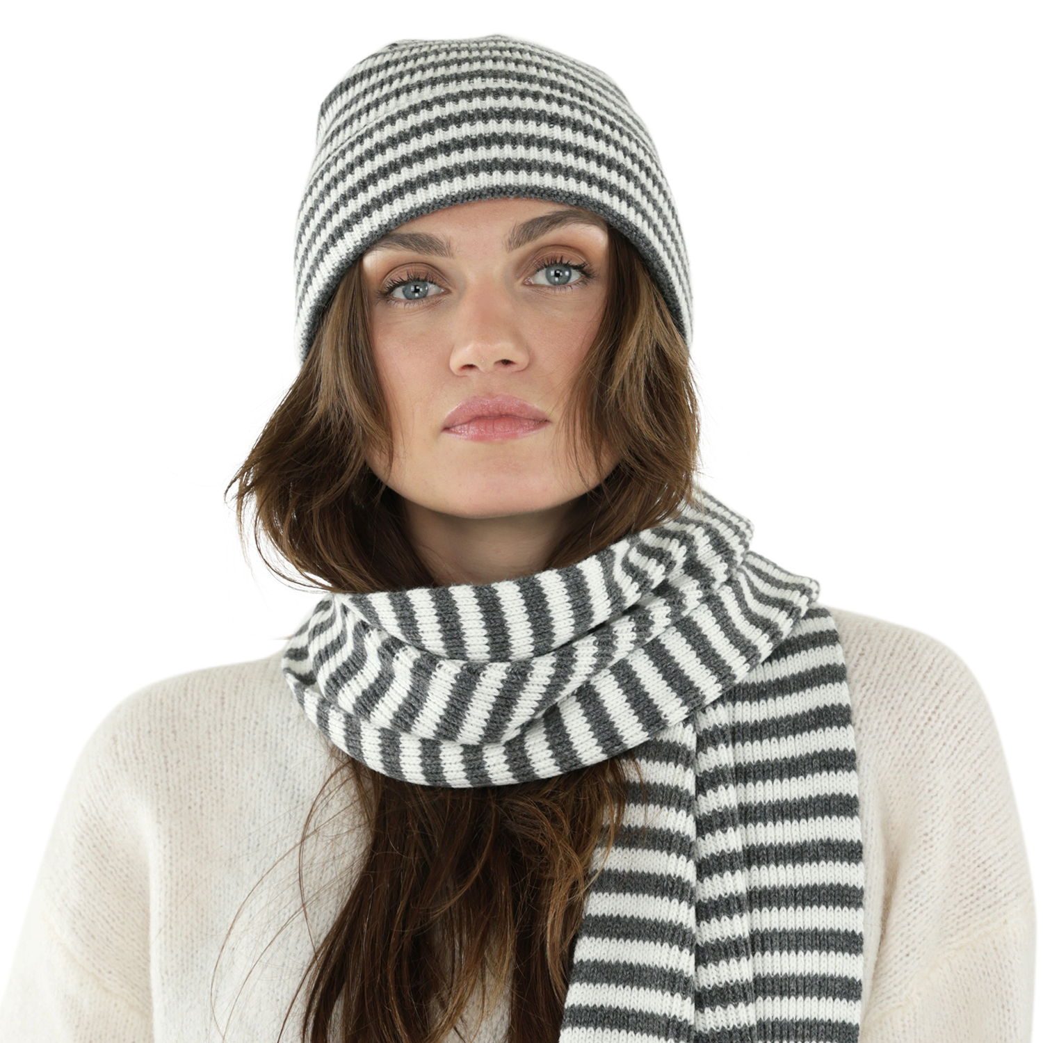 Halsdukar - Gårda Engelberg Striped Wool Mix Scarf (mörkgrå/vit)