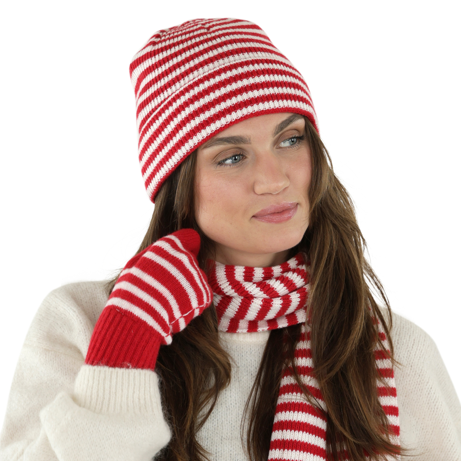 Handskar - Gårda Cavalese Fingervantar i Ullmix (röd/vit)