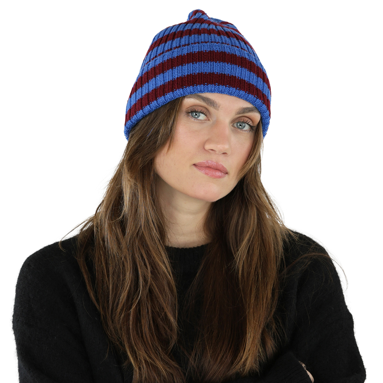 Mössor - Gårda Davos Striped Merino Wool Beanie (vinröd/blå)