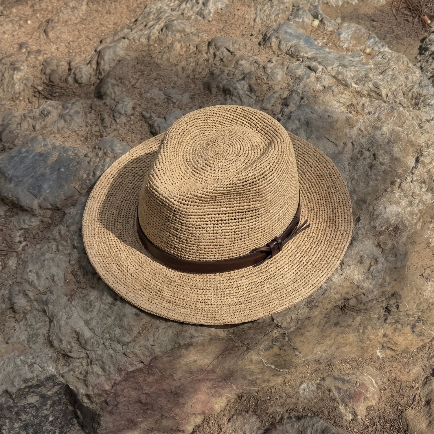Stråhatt - Gårda Funchal Raffia Fedora (ljus natur/mörkbrun)